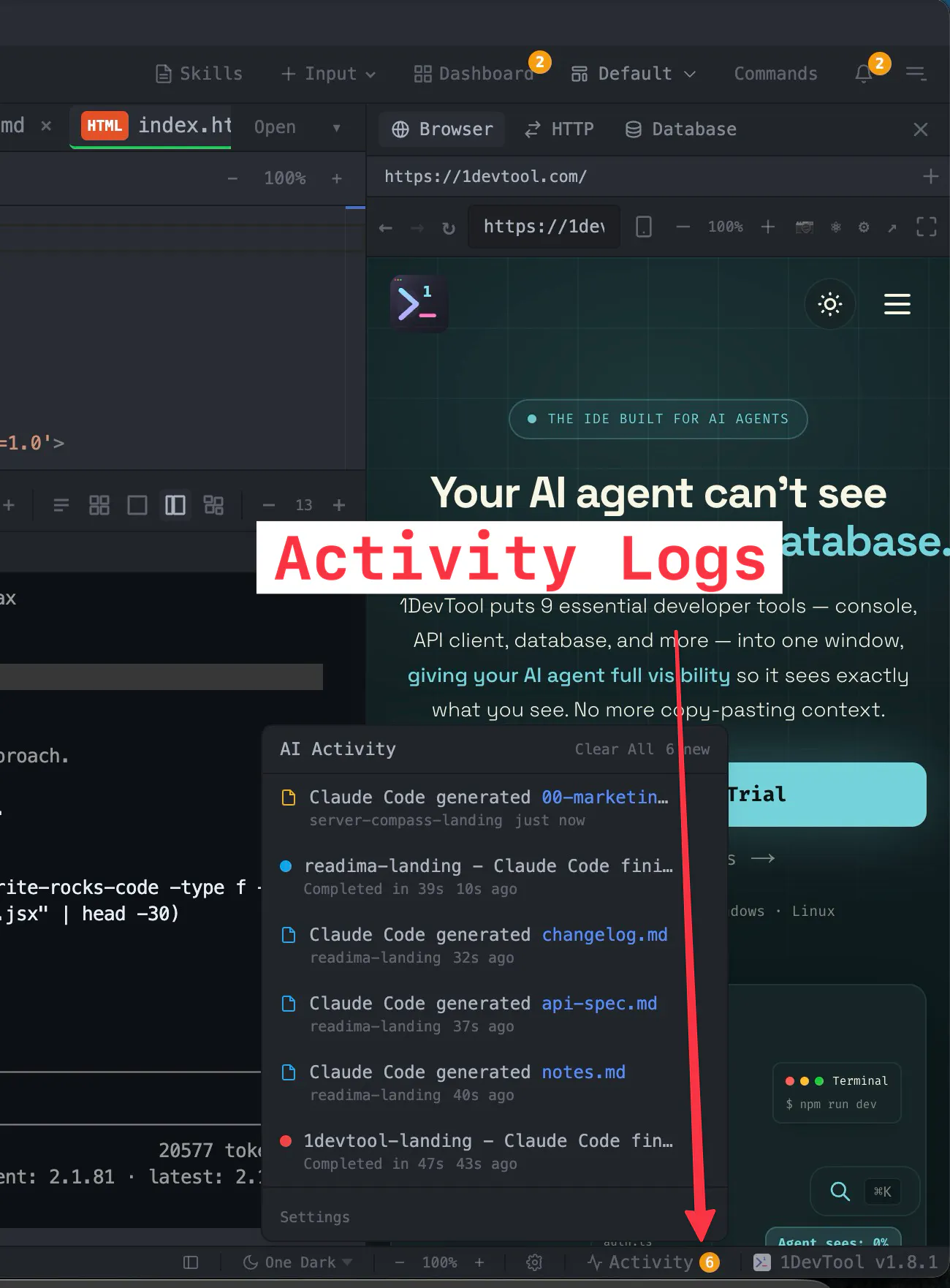 1DevTool: Multi-project IDE with persistent terminals and 9 dev tools