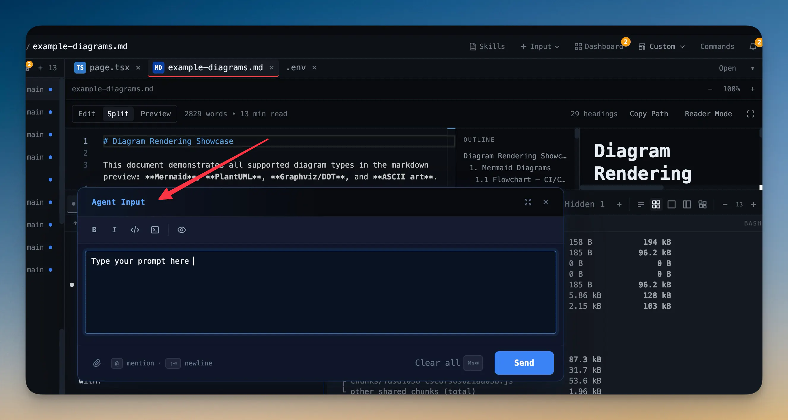 ✍️ Agent Input (Cmd+I) — Expandable prompt editor. Edit files, images, markdown, even screenshots. If you’re writing hints in Notes/Obsidian and pasting them into Terminal, this replaces it.