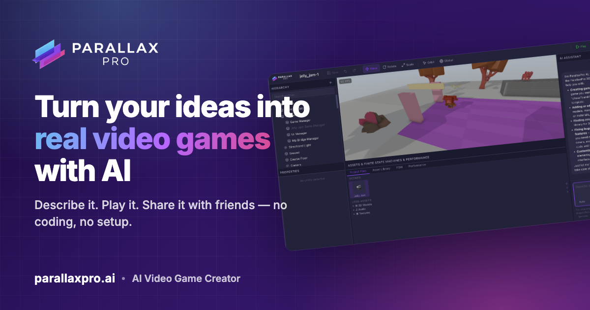ParallaxPro fixes this by tightly integrating an AI assistant with a browser-based 3D game engine.