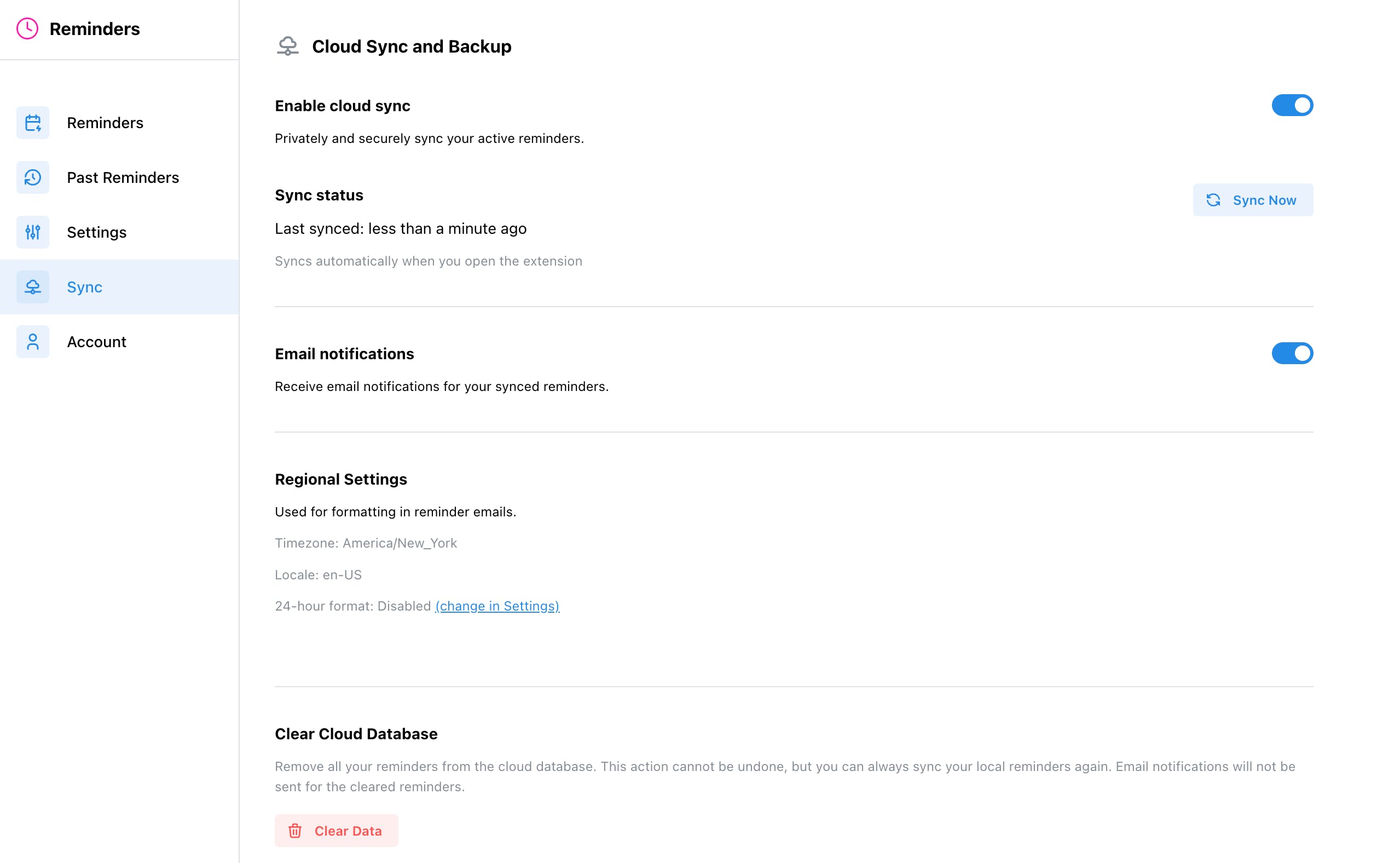 Active reminders now have the backing of the cloud and are automatically synchronized in your devices. It is still a local first-the reminders work offline immediately-but when you reopen the extension popup, they will be synchronized. If you reset the Chrome or switch to the browsers, it makes it easier to restore your reminders.