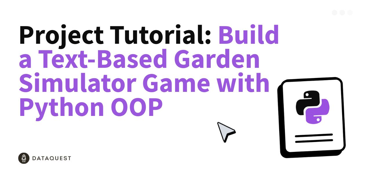 The best way to make OOP clickable is to create something with it. In this project, we are going to create a text-based garden simulator game completely from scratch using Python classes. You’ll be able to forage for seeds, plant them, tend to your garden and harvest your crops, all from the command line. Along the way, every OOP concept we use will have an immediate, concrete reason for its existence.
