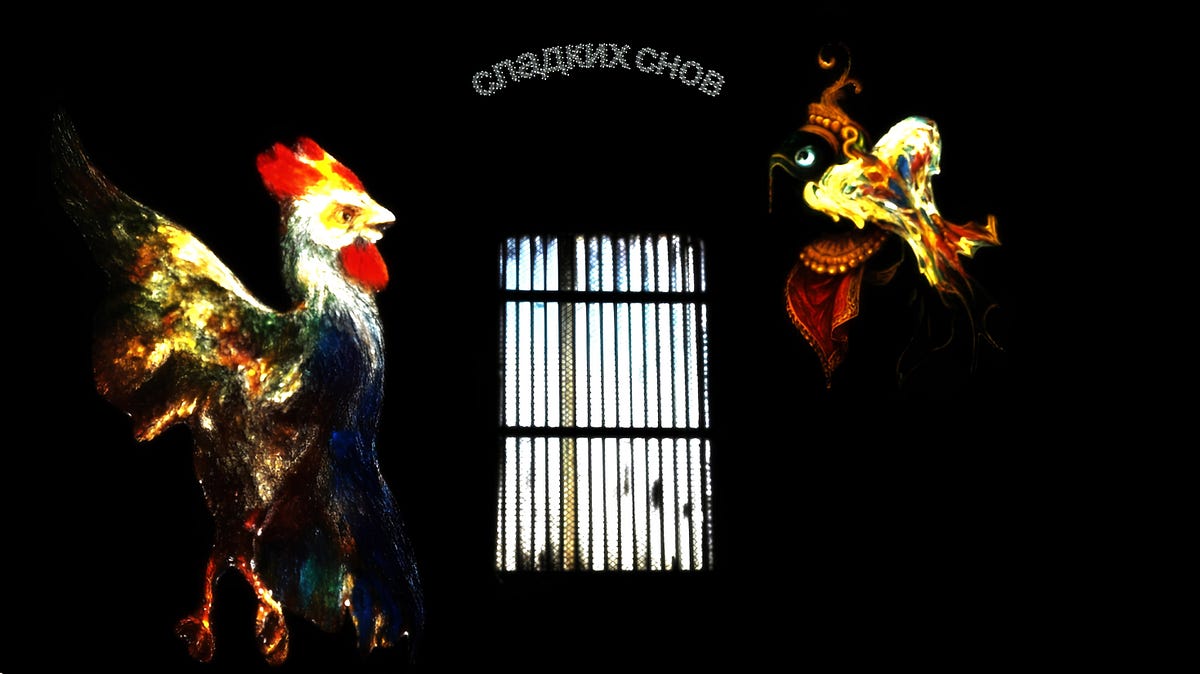 Here is an ugly bird, which is placed against the original background (stencil, oil, paper), which challenges the prototype.